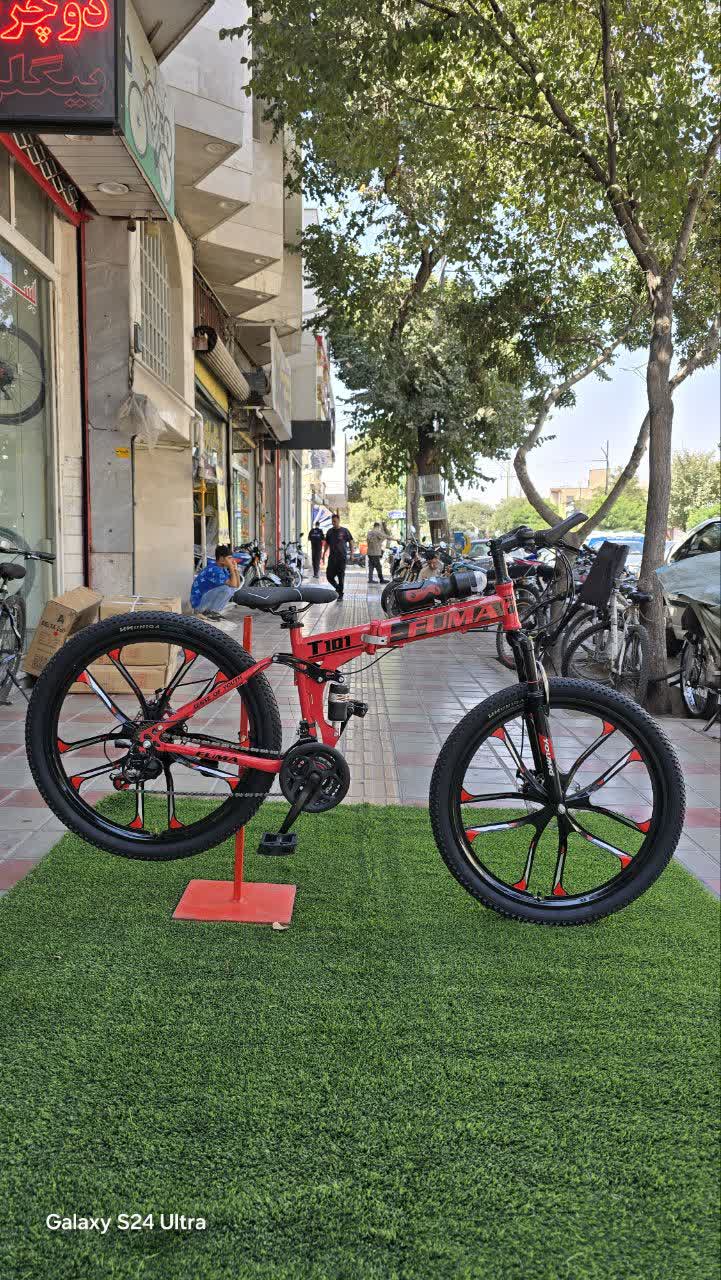 تنه تاشو تنه فولادی سبک دسته دنده کلاچی دارای کمک وسط و جلو ترمزها دیسکی طوقه به صورت اسپرت 10 پره توپی چرخ عقب و جلو بلبرینگی تویپی تنه بلبرینیگی رکاب ها پهن دوشاخه کمک جلو بلبرینگی تنه به راحتی جم میشود و مخصوص مسافرت میباشد