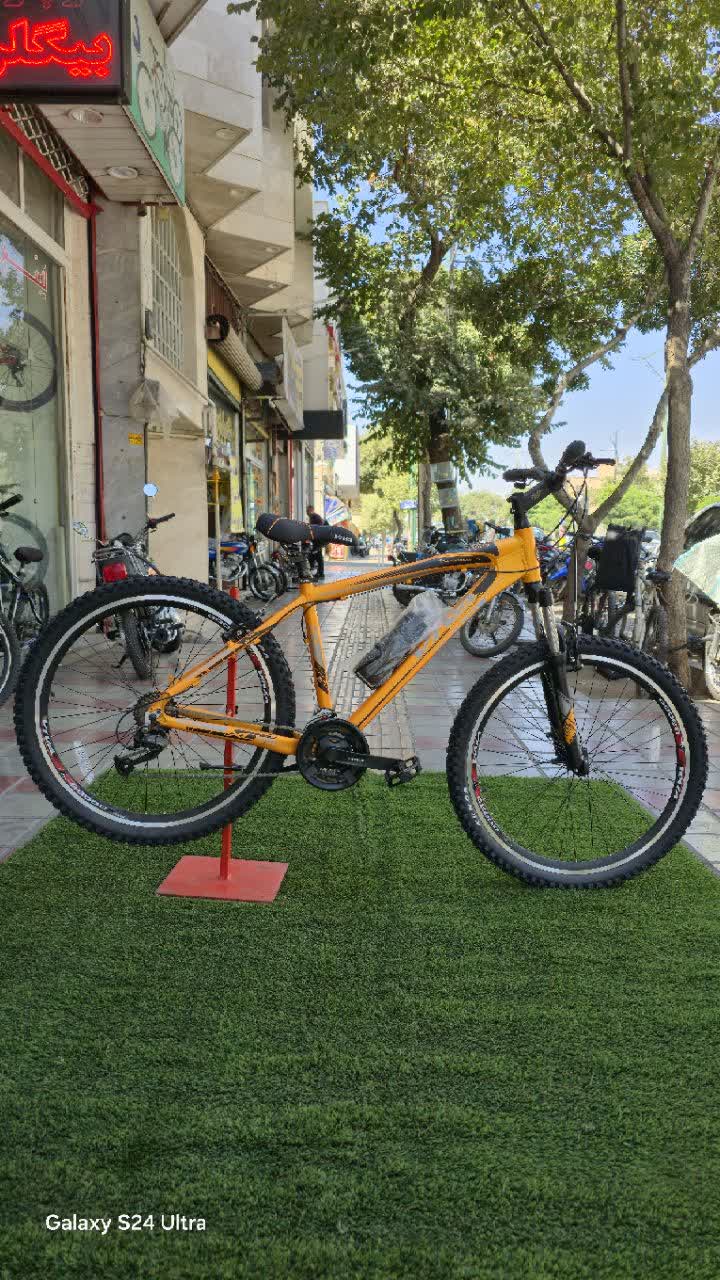 تنه آلمینیوم دسته دنده کلاچی اصل شیمانو ست دندده اصل شیمانو التوس طوقه مثلثی G600 لاستیک کندا ابریشم توپی تنه بلبرینگی دوشاخه کمک جلو قفل کن دار