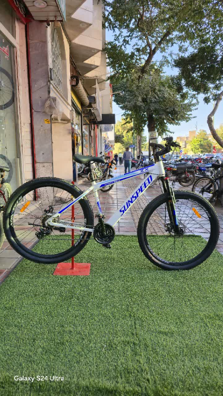 تنه آلمینیوم ی به صورت 24 سرعته دسته دنده کلاچی ست دنده شیمانو ترمز ها دیسکی سیم روکش از داخل تنه دوشاخه کمک جلو قفل کن دار طوقه ها مثلثی دوجه داره
